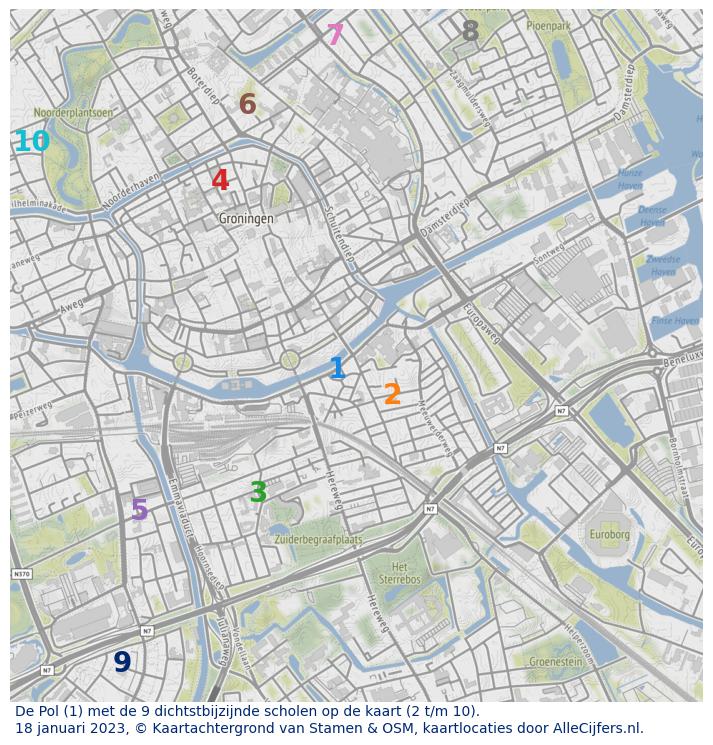 De meeste leerlingen (13) van De Pol wonen in schooljaar 2023-2024 de gemeente Groningen.