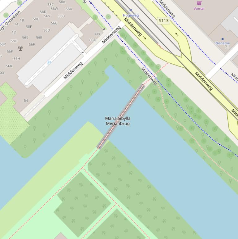 De Maria Sibylla Merianbrug in Amsterdam telt één openbare ruimte. Civiel-technisch werk Maria Sibylla Merianbrug ligt in de buurt Frankendael binnen de gemeente Amsterdam.
