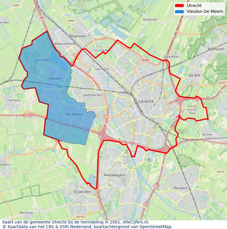 Kaart van de ligging van de voormalige gemeente Vleuten-De Meern die in 2001 in de gemeente Utrecht is opgegaan.