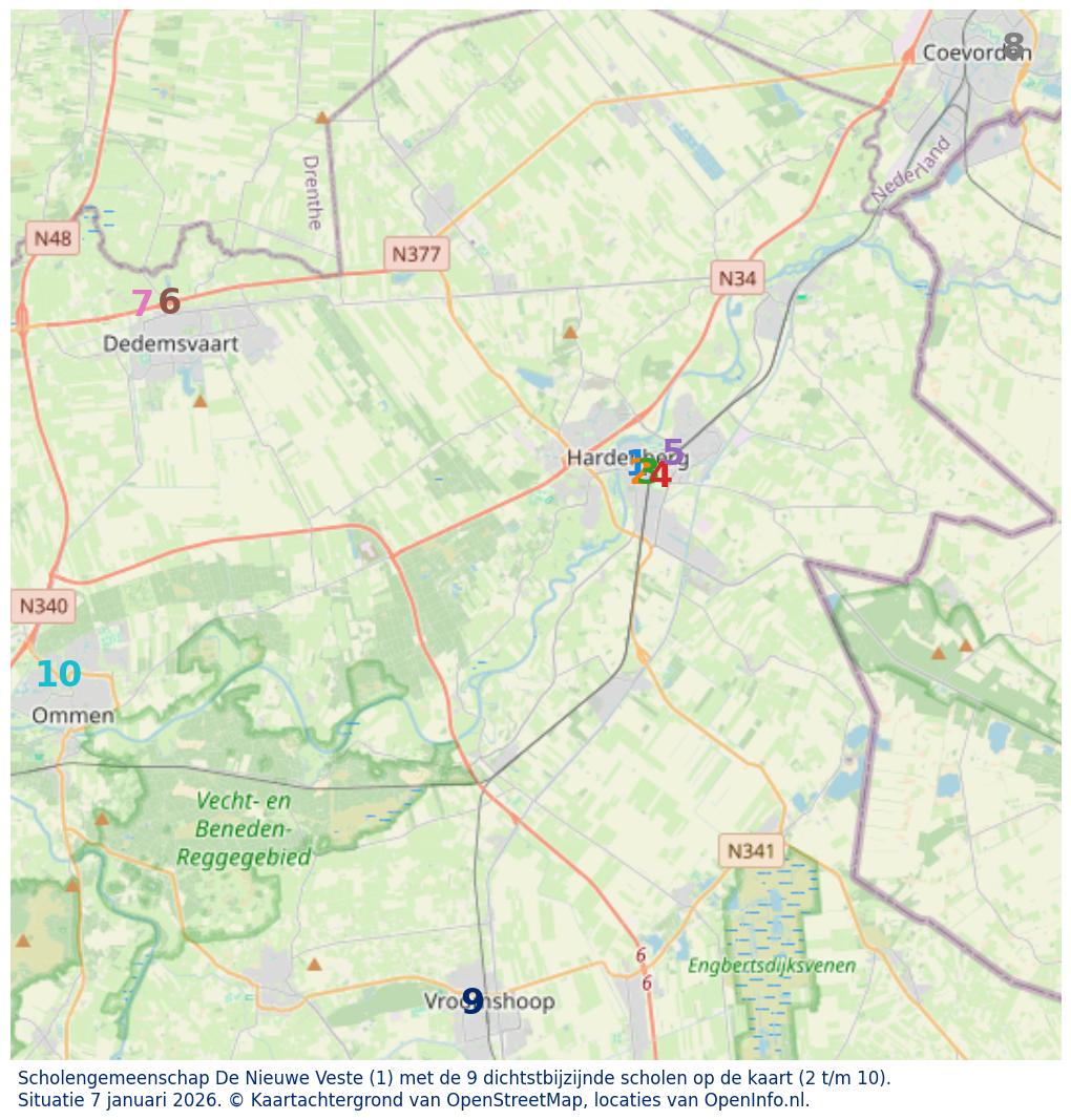 De meeste leerlingen (63) van Scholengemeenschap De Nieuwe Veste wonen in schooljaar 2025-2026 in postcodegebied 7772.