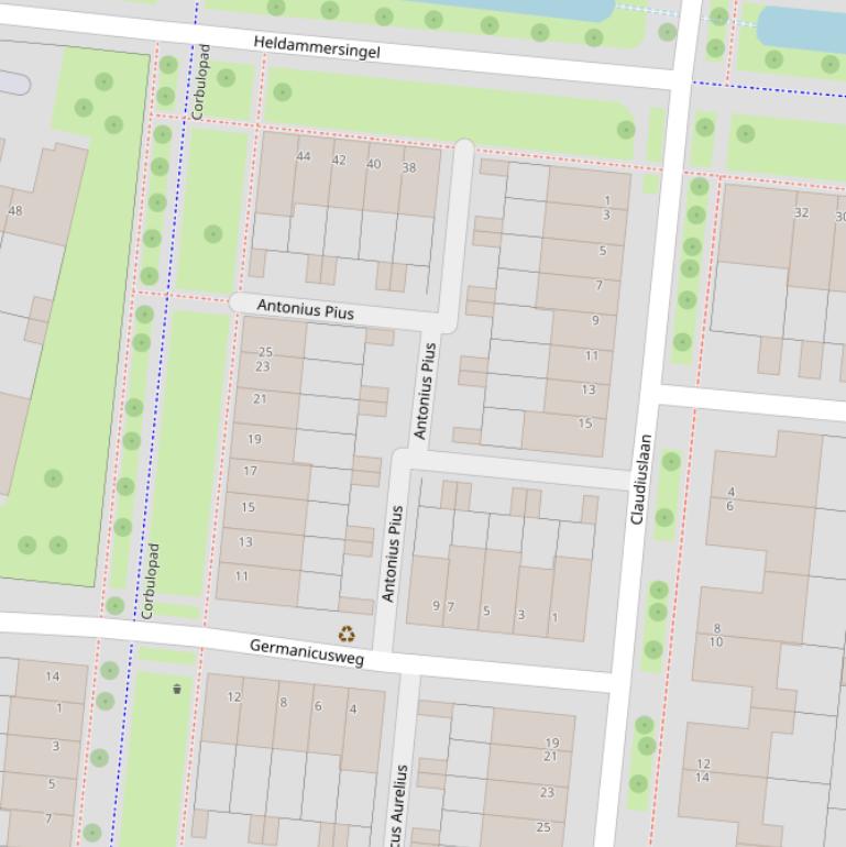 Bovenstaande tabel toont de openbare ruimte van Antoninus Pius. Dit zijn alle adressen op basis van de BAG data van het Kadaster van 1 juli 2025.