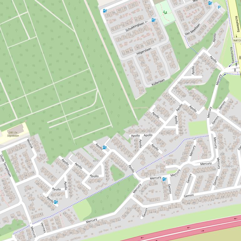 Apollo in Soesterberg heeft adressen met 8 verschillende postcodes. Deze postcodes lopen van 3769TA tot en met 3769TJ. De tabel met adressen op deze pagina toont alle adressen met alle postcodes van Apollo in Soesterberg. Deze weg heeft de huisnummerreeks 1 t/m 234. Weg Apollo ligt in de buurt Soesterberg Oost binnen de gemeente Soest.