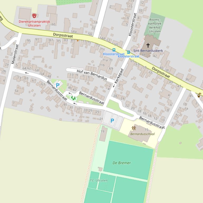 De Bernardusstraat in Ulicoten heeft 2 postcodes, te weten: 5113TG en 5113TL. Deze weg heeft de huisnummerreeks 1 t/m 75. Weg Bernardusstraat ligt in 2 buurten. Dit zijn de buurten Buitengebied Ulicoten en Kern Ulicoten. Deze buurten liggen binnen de gemeente Baarle-Nassau.