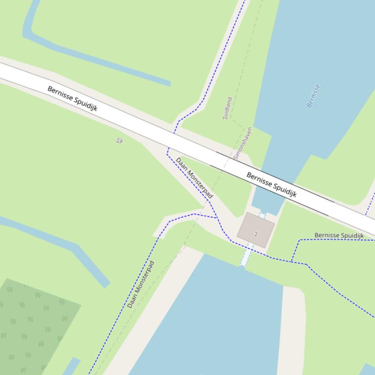 | Bernisse Spuidijk | 2 - a | geen postcode | Zuidland | Overige_gebruiksfunctie | 2 m2 | n.v.t. | 2000 | geen data | nee | Weg |