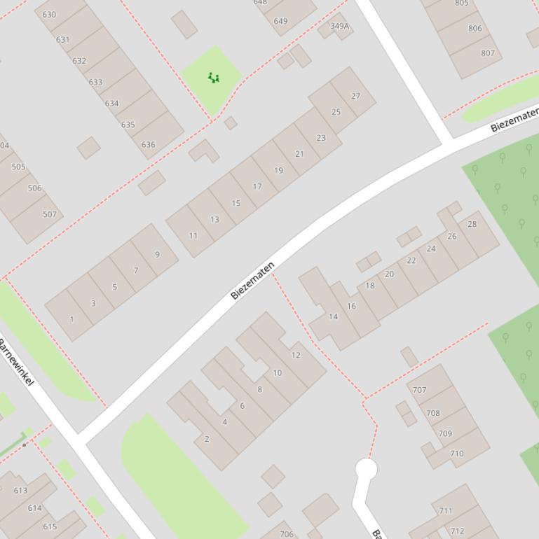 Bovenstaande tabel toont de 28 adressen van Biezematen. Dit zijn alle adressen op basis van de BAG data van het Kadaster van 1 juli 2025.