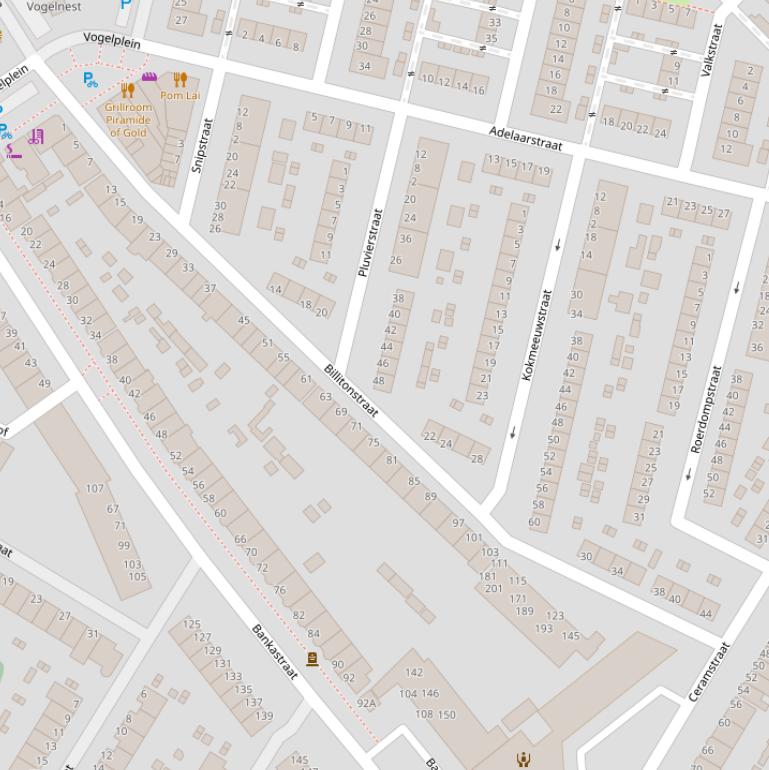 De Billitonstraat in Dordrecht heeft 3 postcodes, te weten: 3312SB, 3312SC en 3312SE. Deze weg heeft de huisnummerreeks 1 t/m 201. Weg Billitonstraat ligt in de buurt Vogelplein-Aalscholverstraat en omgeving binnen de gemeente Dordrecht.