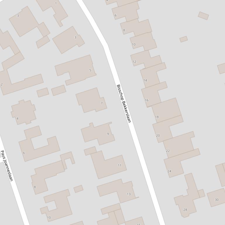 Bovenstaande tabel toont de 19 adressen van de Bisschop Bekkerslaan. Dit zijn alle adressen op basis van de BAG data van het Kadaster van 1 juli 2025.