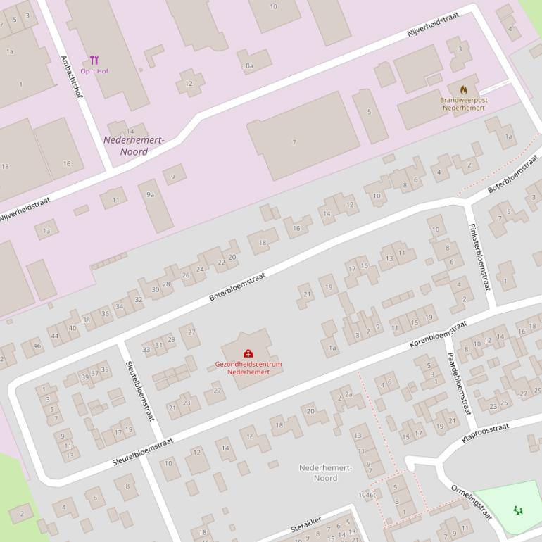 | Boterbloemstraat | 23 | 5317NH | Nederhemert | Gezondheidszorgfunctie | 764 m2 | n.v.t. | 1993 | G | ja | Weg |