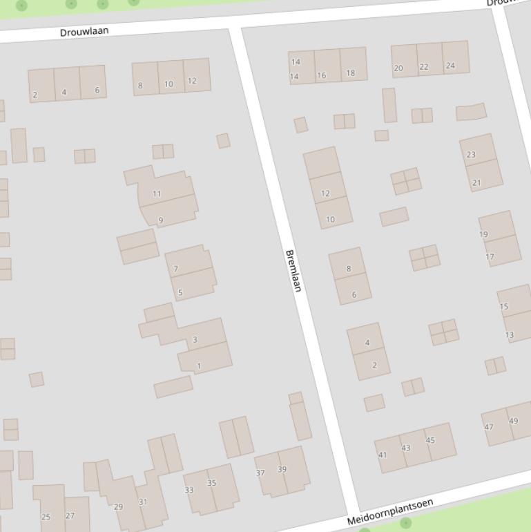 Bovenstaande tabel toont de 13 adressen van de Bremlaan. Dit zijn alle adressen op basis van de BAG data van het Kadaster van 1 juli 2025.