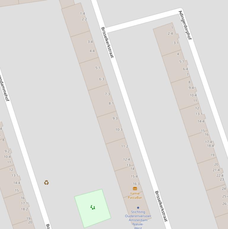| Brisselkerkstraat | 14 | 1069ZL | Amsterdam | Overige_gebruiksfunctie | 1 m2 | n.v.t. | 1961 | geen data | ja | Weg |