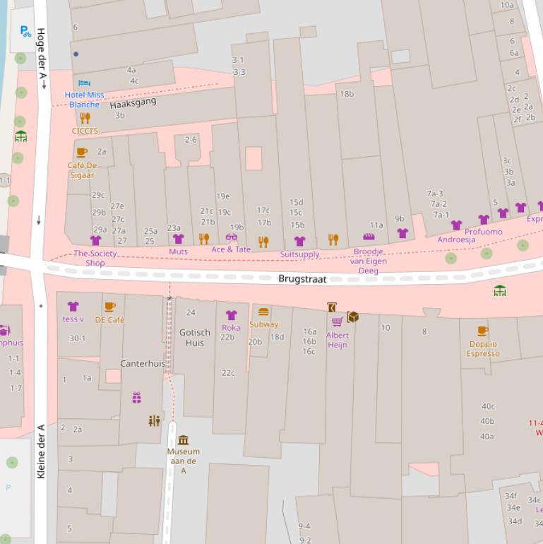 | Brugstraat | 34 | 9711HZ | Groningen | Winkelfunctie | 332 m2 | n.v.t. | 1890 | geen data | ja | Weg |