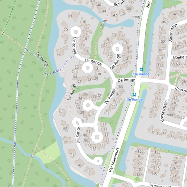 Bovenstaande tabel toont de regionale gebieden die De Ronge ‘raken’. De Ronge ‘raakt’ andere gebieden zoals buurten en woonplaatsen wanneer de geometrieën van De Ronge en die van de buurten en woonplaatsen elkaar overlappen of snijden. Dit betekent dat er een gedeelde grens is tussen de straat en deze gebieden, waarbij ze op een bepaalde manier met elkaar verbonden zijn. Dit kan gebeuren wanneer De Ronge door een buurt loopt of de grens van een woonplaats volgt. De gebieden zijn op basis van de gebiedsindelingen van het CBS van 2025 en de topografische kaarten van het Kadaster van 2025 bepaald.