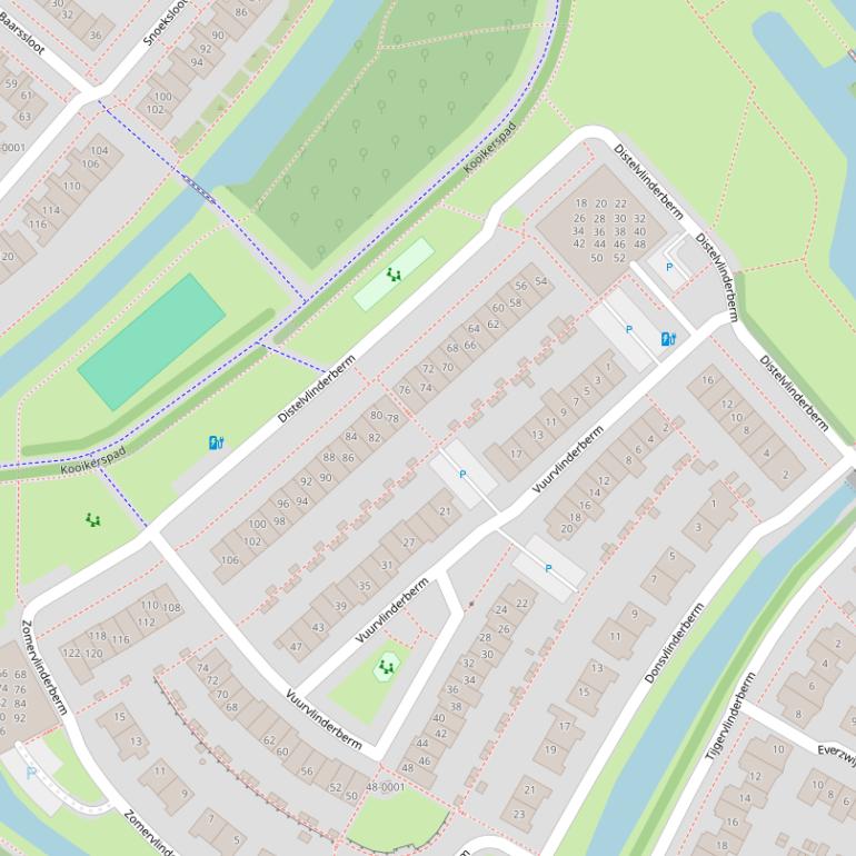 Distelvlinderberm in Houten heeft 3 postcodes, te weten: 3994WC, 3994WD en 3994WT. Deze weg heeft de huisnummerreeks 2 t/m 122. Weg Distelvlinderberm ligt in de buurt Bermen binnen de gemeente Houten.