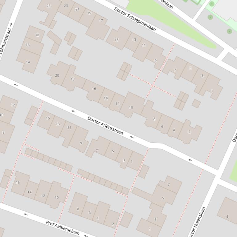 Bovenstaande tabel toont de 18 adressen van de Dr Ariënsstraat. Dit zijn alle adressen op basis van de BAG data van het Kadaster van 1 juli 2025.
