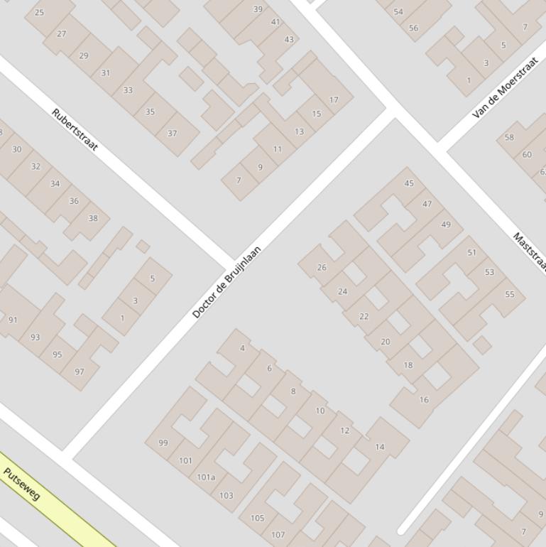 Bovenstaande tabel toont de 21 adressen van Dr de Bruijnlaan. Dit zijn alle adressen op basis van de BAG data van het Kadaster van 1 juli 2025.