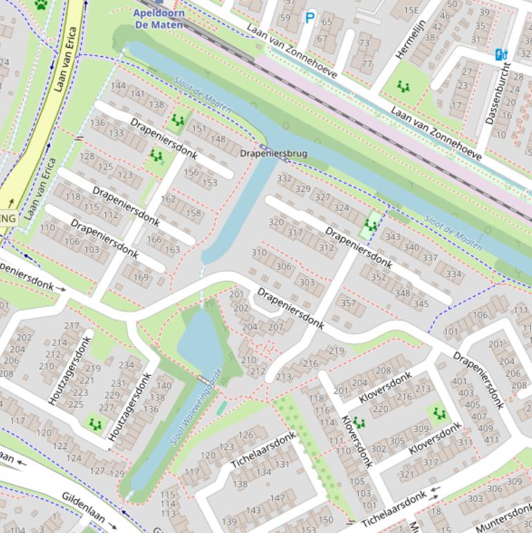 Drapeniersdonk in Apeldoorn heeft adressen met 9 verschillende postcodes. Deze postcodes lopen van 7326AE tot en met 7326AP. De tabel met adressen op deze pagina toont alle adressen met alle postcodes van Drapeniersdonk in Apeldoorn. Deze weg heeft de huisnummerreeks 101 t/m 411. Weg Drapeniersdonk ligt in de buurt Matendonk binnen de gemeente Apeldoorn.
