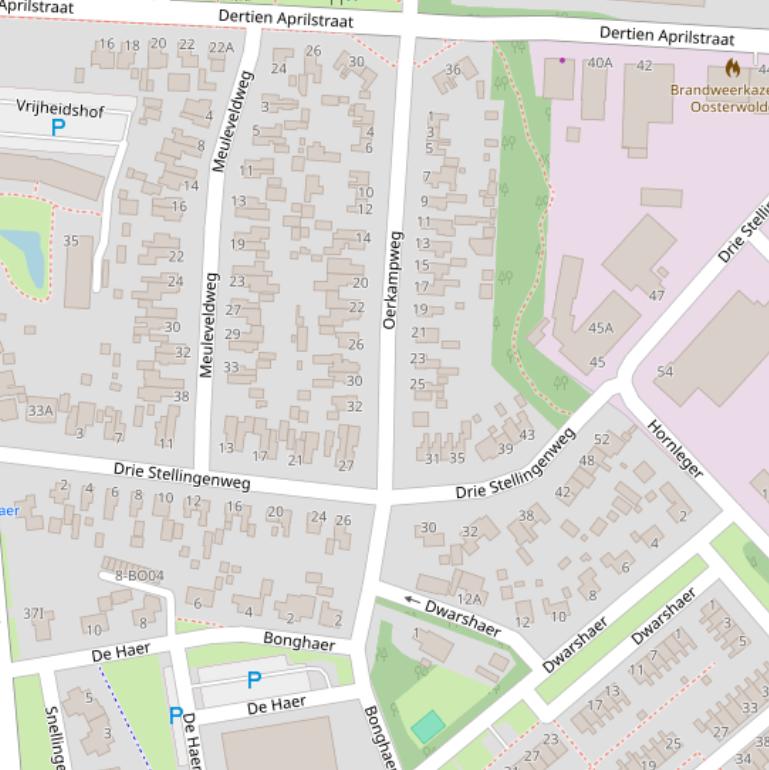 | Drie Stellingenweg | 16 | 8431GP | Oosterwolde | Woonfunctie | 79 m2 | Twee-onder-één-kap woning | 1953 | F | ja | Weg |