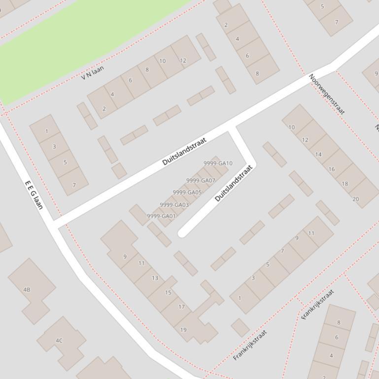 Bovenstaande tabel toont de openbare ruimtes van de Duitslandstraat. Dit zijn alle adressen op basis van de BAG data van het Kadaster van 1 juli 2025.