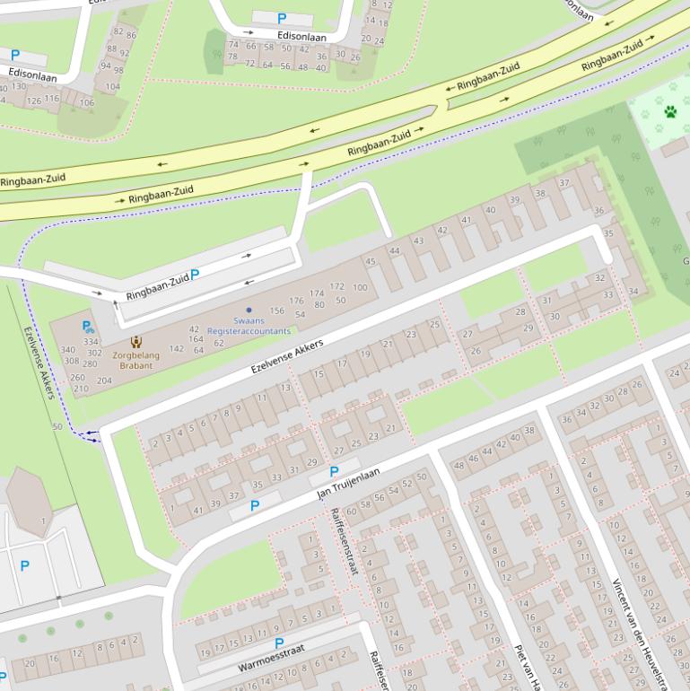 Ezelvense Akkers in Tilburg heeft 2 postcodes, te weten: 5022PL en 5022PM. Deze weg heeft de huisnummerreeks 1 t/m 50. Weg Ezelvense Akkers ligt in de buurt Ezelvense Akkers binnen de gemeente Tilburg.