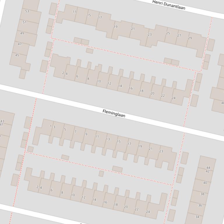 Bovenstaande tabel toont de 24 adressen van de Fleminglaan. Dit zijn alle adressen op basis van de BAG data van het Kadaster van 1 juli 2025.