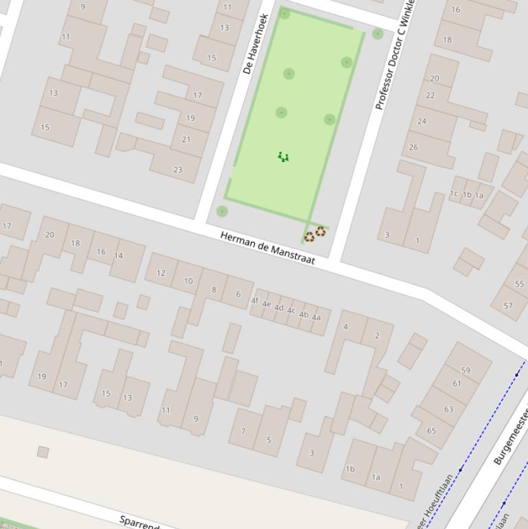 Op deze pagina vind je alle adressen van Herman de Manstraat en de data over diverse onderwerpen die voor Herman de Manstraat bekend zijn in grafieken en tabellen. De gebruikte gegevens zijn afkomstig van het Kadaster, de RVO en afgeleid van de postcodedata van het CBS.