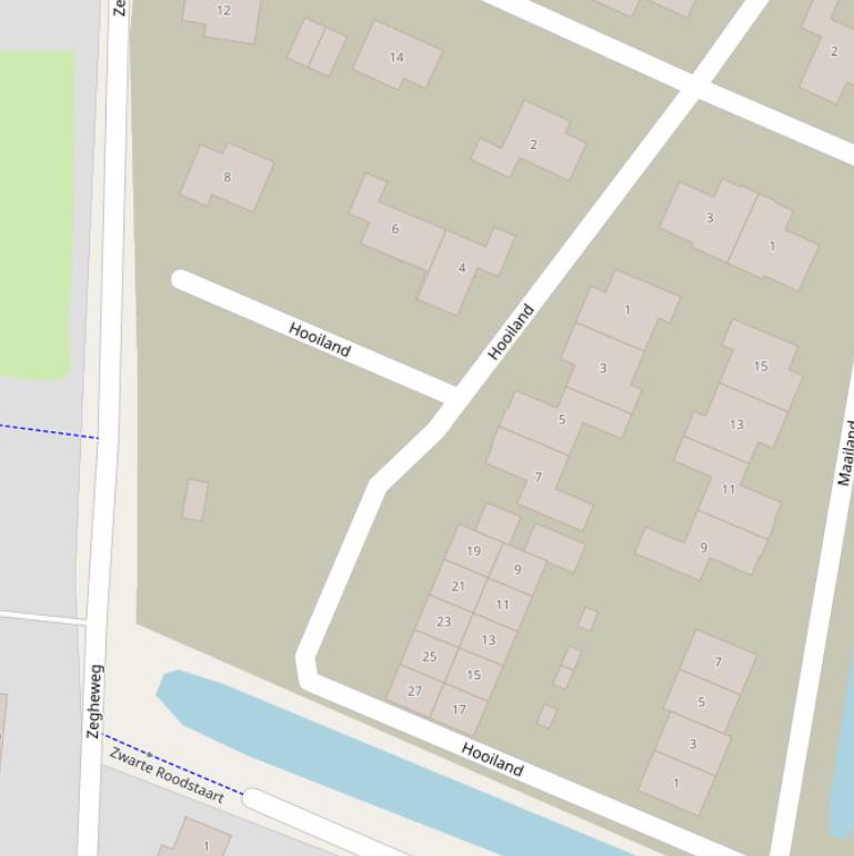Bovenstaande tabel toont de 18 adressen van Hooiland. Dit zijn alle adressen op basis van de BAG data van het Kadaster van 1 juli 2025.
