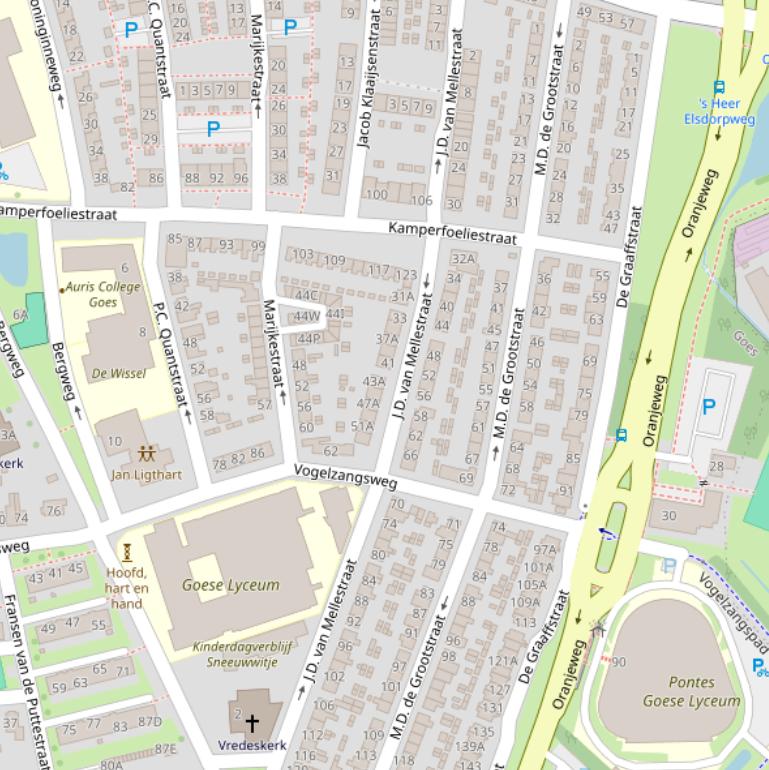 De J.D.van Mellestraat in Goes heeft adressen met 6 verschillende postcodes. Deze postcodes lopen van 4461VP tot en met 4461VW. De tabel met adressen op deze pagina toont alle adressen met alle postcodes van J.D.van Mellestraat in Goes. Deze weg heeft de huisnummerreeks 1 t/m 120. Weg J.D.van Mellestraat ligt in de buurt Goes-Oost binnen de gemeente Goes.