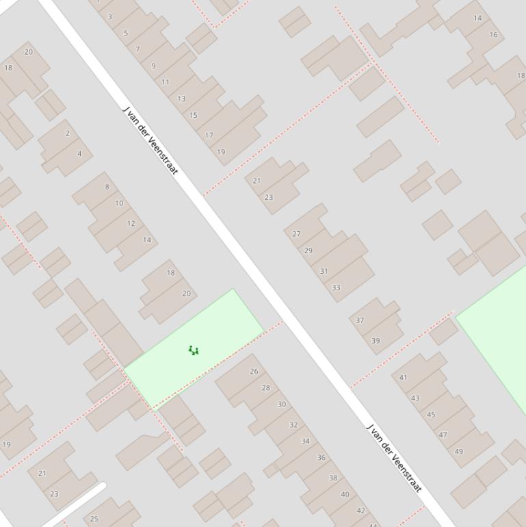 Op deze pagina vind je alle adressen van de J van der Veenstraat en de data over diverse onderwerpen die voor de J van der Veenstraat bekend zijn in grafieken en tabellen. De gebruikte gegevens zijn afkomstig van het Kadaster, de RVO en afgeleid van de postcodedata van het CBS.