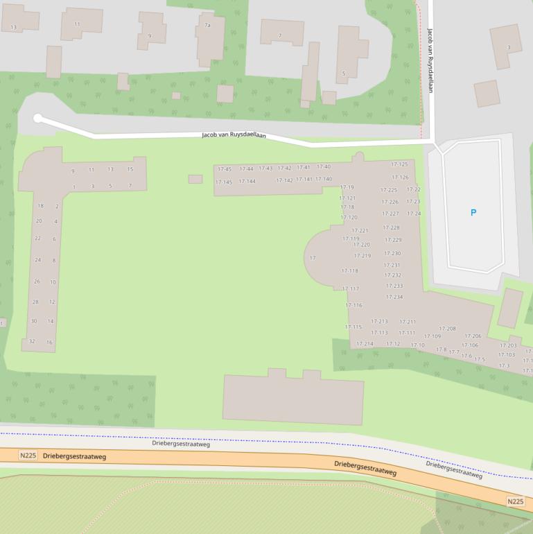 | Jacob van Ruysdaellaan | 17 | 3941ZE | Doorn | Woonfunctie Bijeenkomstfunctie Gezondheidszorgfunctie | 6.408 m2 | Appartement | 1973 | E | ja | Weg |