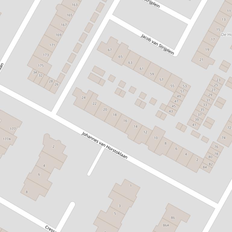 Op deze pagina vind je alle adressen van de Johannes van Horstoklaan en de data over diverse onderwerpen die voor de Johannes van Horstoklaan bekend zijn in grafieken en tabellen. De gebruikte gegevens zijn afkomstig van het Kadaster, de RVO en afgeleid van de postcodedata van het CBS.