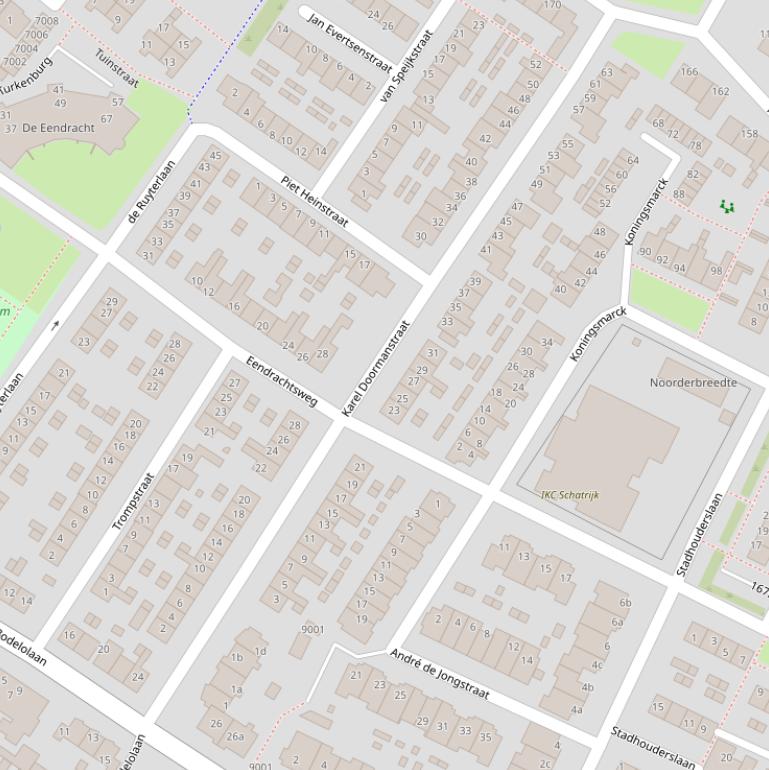 Op deze pagina vind je alle adressen van de Karel Doormanstraat en de data over diverse onderwerpen die voor de Karel Doormanstraat bekend zijn in grafieken en tabellen. De gebruikte gegevens zijn afkomstig van het Kadaster, de RVO en afgeleid van de postcodedata van het CBS.