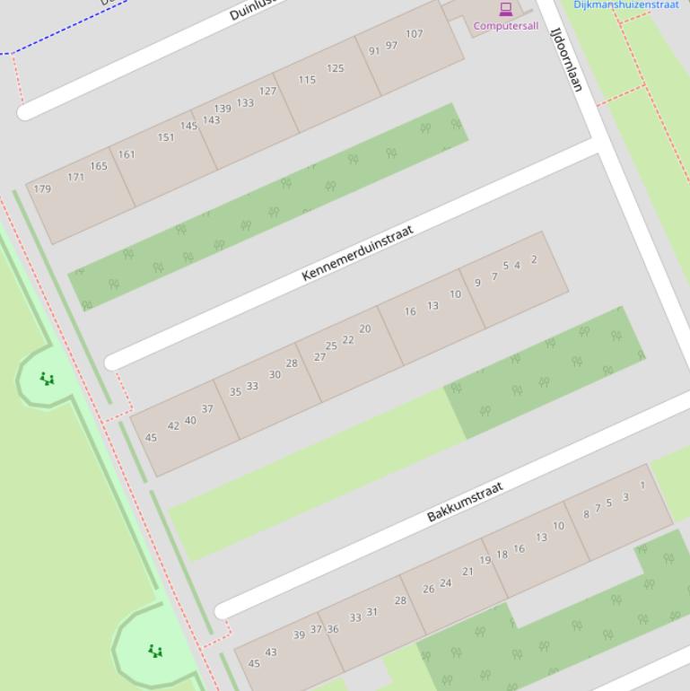 Op deze pagina vind je alle adressen van de Kennemerduinstraat en de data over diverse onderwerpen die voor de Kennemerduinstraat bekend zijn in grafieken en tabellen. De gebruikte gegevens zijn afkomstig van het Kadaster, de RVO en afgeleid van de postcodedata van het CBS.