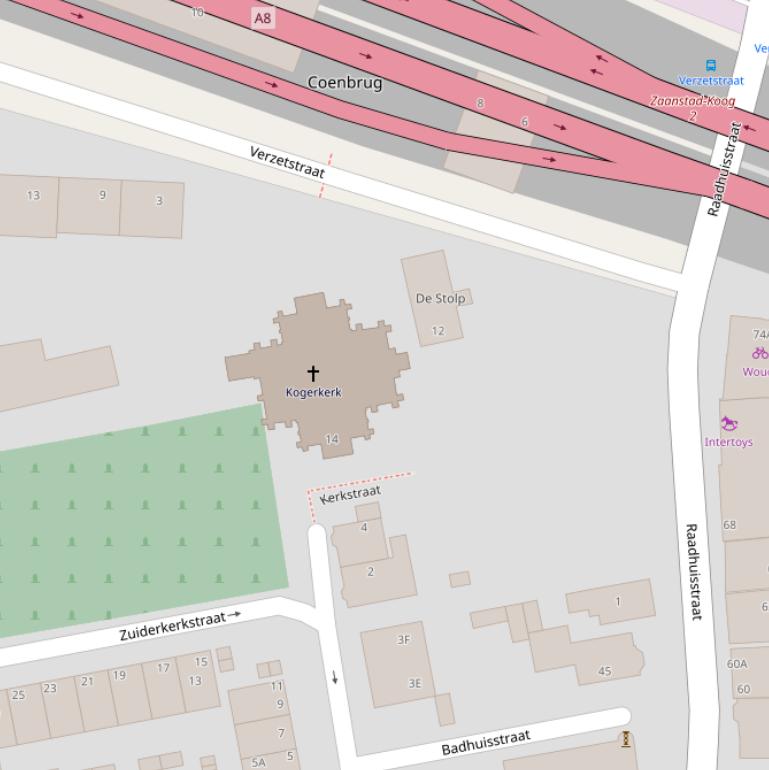 | Kerkstraat | 14 | 1541HA | Koog aan de Zaan | Bijeenkomstfunctie | 555 m2 | n.v.t. | 1686 | geen data | ja | Weg |