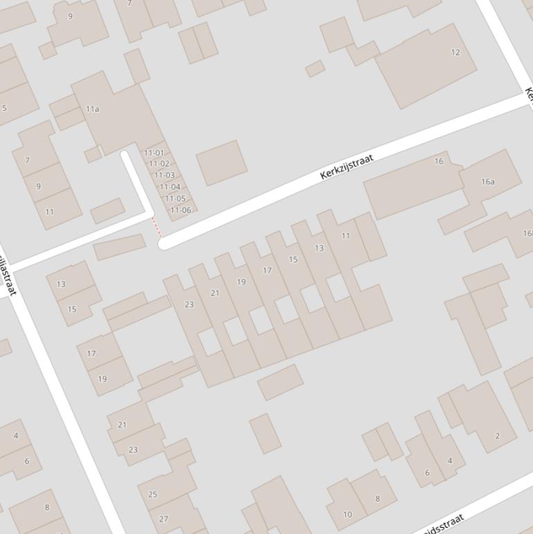 Op deze pagina vind je alle adressen van de Kerkzijstraat en de data over diverse onderwerpen die voor de Kerkzijstraat bekend zijn in grafieken en tabellen. De gebruikte gegevens zijn afkomstig van het Kadaster, de RVO en afgeleid van de postcodedata van het CBS.