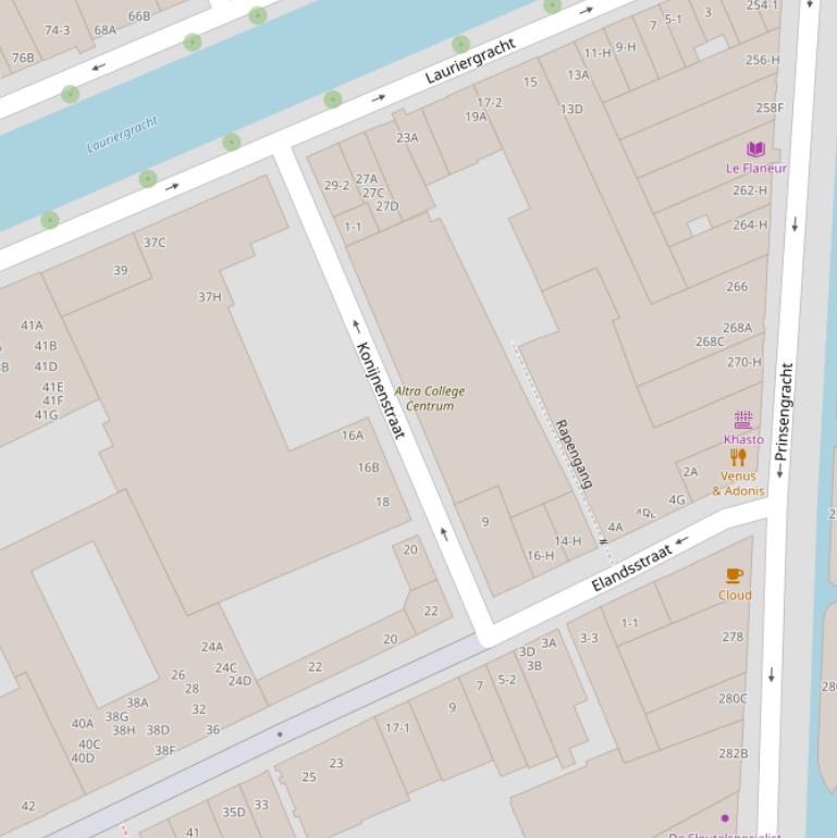 De Konijnenstraat in Amsterdam telt 9 adressen en die hebben 1016SL als postcode. Deze weg heeft de huisnummerreeks 1 t/m 22. Weg Konijnenstraat ligt in de buurt Elandsgrachtbuurt binnen de gemeente Amsterdam.