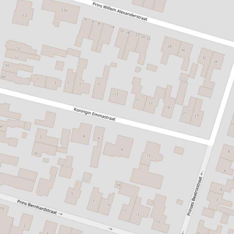 Op deze pagina vind je alle adressen van de Koningin Emmastraat en de data over diverse onderwerpen die voor de Koningin Emmastraat bekend zijn in grafieken en tabellen. De gebruikte gegevens zijn afkomstig van het Kadaster, de RVO en afgeleid van de postcodedata van het CBS.