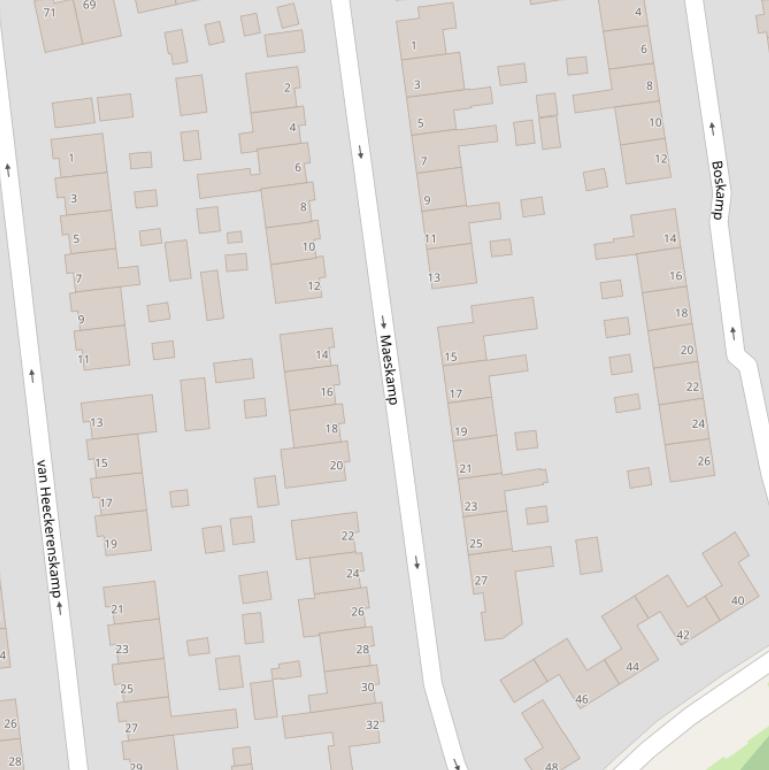 Bovenstaande tabel toont de regionale gebieden die Maeskamp ‘raken’. Maeskamp ‘raakt’ andere gebieden zoals buurten en woonplaatsen wanneer de geometrieën van Maeskamp en die van de buurten en woonplaatsen elkaar overlappen of snijden. Dit betekent dat er een gedeelde grens is tussen de straat en deze gebieden, waarbij ze op een bepaalde manier met elkaar verbonden zijn. Dit kan gebeuren wanneer Maeskamp door een buurt loopt of de grens van een woonplaats volgt. De gebieden zijn op basis van de gebiedsindelingen van het CBS van 2025 en de topografische kaarten van het Kadaster van 2025 bepaald.