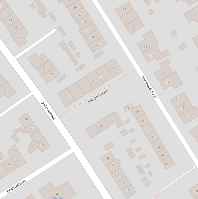 Op deze pagina vind je alle adressen van de Margrietstraat en de data over diverse onderwerpen die voor de Margrietstraat bekend zijn in grafieken en tabellen. De gebruikte gegevens zijn afkomstig van het Kadaster, de RVO en afgeleid van de postcodedata van het CBS.