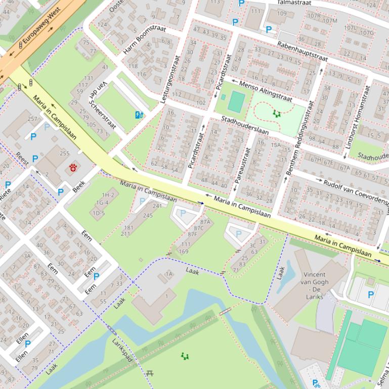 Bovenstaande tabel toont de regionale gebieden die de Maria in Campislaan ‘raken’. Maria in Campislaan ‘raakt’ andere gebieden zoals buurten en woonplaatsen wanneer de geometrieën van Maria in Campislaan en die van de buurten en woonplaatsen elkaar overlappen of snijden. Dit betekent dat er een gedeelde grens is tussen de straat en deze gebieden, waarbij ze op een bepaalde manier met elkaar verbonden zijn. Dit kan gebeuren wanneer Maria in Campislaan door een buurt loopt of de grens van een woonplaats volgt. De gebieden zijn op basis van de gebiedsindelingen van het CBS van 2025 en de topografische kaarten van het Kadaster van 2025 bepaald.