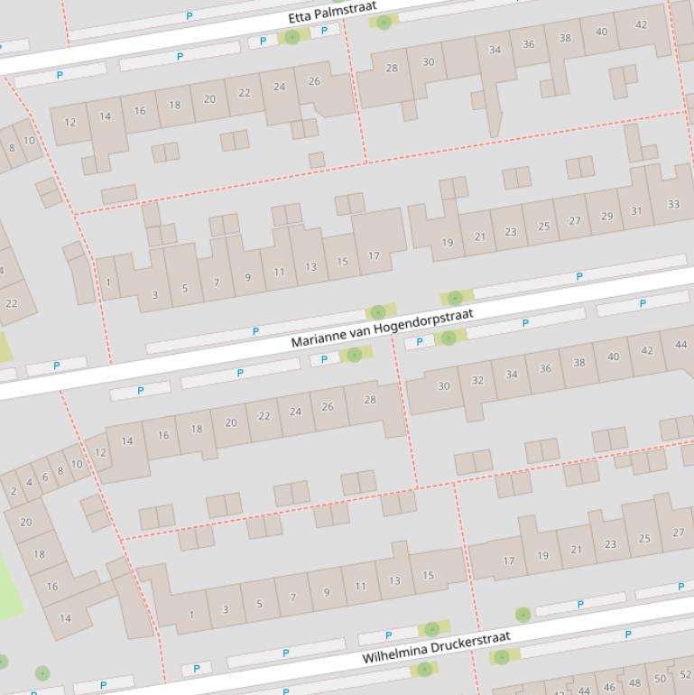 Op deze pagina vind je alle adressen van de Marianne van Hogendorpstraat en de data over diverse onderwerpen die voor de Marianne van Hogendorpstraat bekend zijn in grafieken en tabellen. De gebruikte gegevens zijn afkomstig van het Kadaster, de RVO en afgeleid van de postcodedata van het CBS.