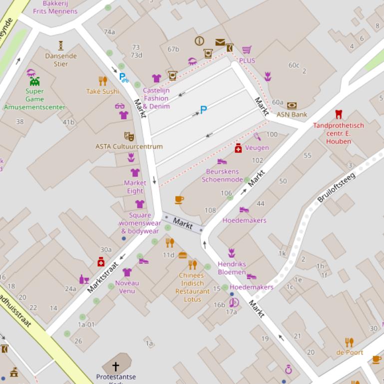| Markt | 1 - f | 6191JG | Beek | Bijeenkomstfunctie Winkelfunctie | 680 m2 | n.v.t. | 1960 | C | ja | Weg |