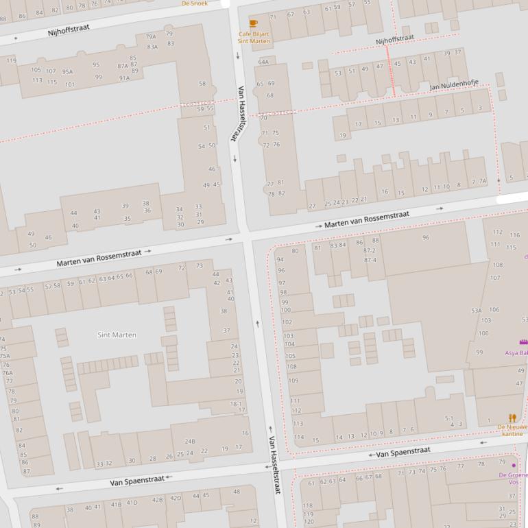 Op deze pagina vind je alle adressen van Marten van Rossemstraat en de data over diverse onderwerpen die voor Marten van Rossemstraat bekend zijn in grafieken en tabellen. De gebruikte gegevens zijn afkomstig van het Kadaster, de RVO en afgeleid van de postcodedata van het CBS.
