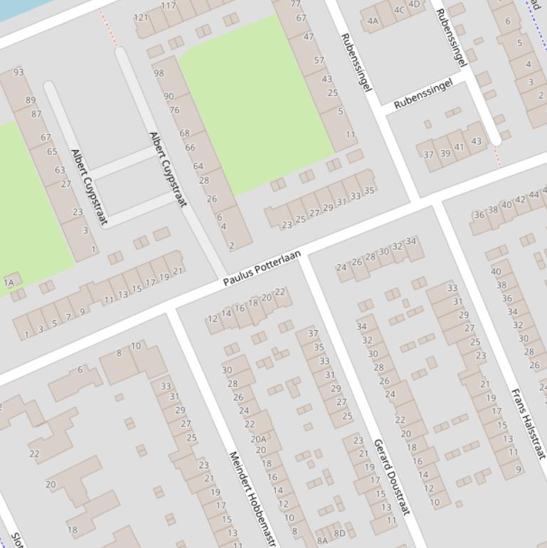 Op deze pagina vind je alle adressen van de Paulus Potterlaan en de data over diverse onderwerpen die voor de Paulus Potterlaan bekend zijn in grafieken en tabellen. De gebruikte gegevens zijn afkomstig van het Kadaster, de RVO en afgeleid van de postcodedata van het CBS.