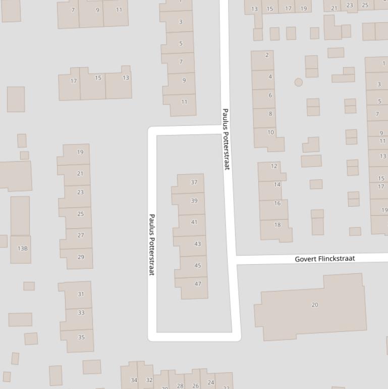 Op deze pagina vind je alle adressen van de Paulus Potterstraat en de data over diverse onderwerpen die voor de Paulus Potterstraat bekend zijn in grafieken en tabellen. De gebruikte gegevens zijn afkomstig van het Kadaster, de RVO en afgeleid van de postcodedata van het CBS.