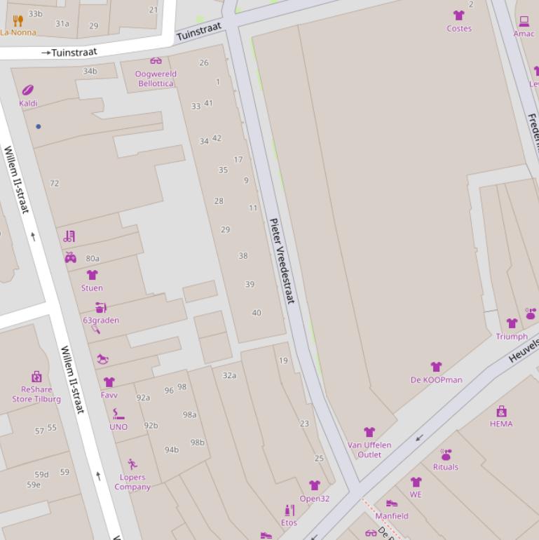 | Pieter Vreedestraat | 1 | 5038AX | Tilburg | Winkelfunctie | 58 m2 | n.v.t. | 2007 | geen data | ja | Weg |