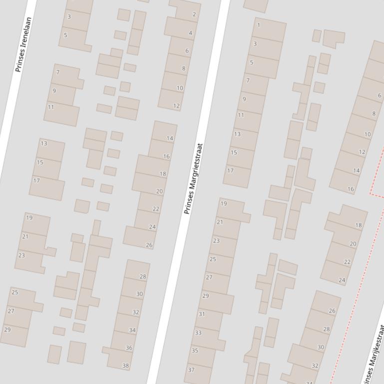 Op deze pagina vind je alle adressen van de Prinses Margrietstraat en de data over diverse onderwerpen die voor de Prinses Margrietstraat bekend zijn in grafieken en tabellen. De gebruikte gegevens zijn afkomstig van het Kadaster, de RVO en afgeleid van de postcodedata van het CBS.