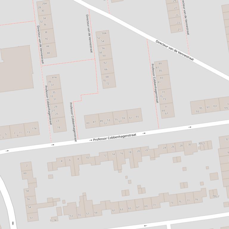Op deze pagina vind je alle adressen van de Prof.Cobbenhagenstraat en de data over diverse onderwerpen die voor de Prof.Cobbenhagenstraat bekend zijn in grafieken en tabellen. De gebruikte gegevens zijn afkomstig van het Kadaster, de RVO en afgeleid van de postcodedata van het CBS.