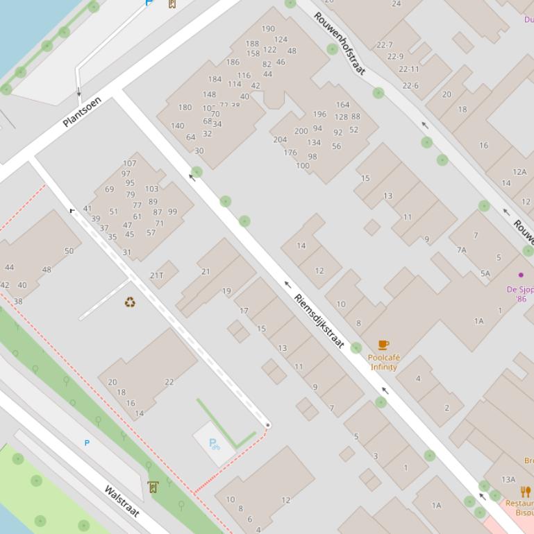 Op deze pagina vind je alle adressen van de Riemsdijkstraat en de data over diverse onderwerpen die voor de Riemsdijkstraat bekend zijn in grafieken en tabellen. De gebruikte gegevens zijn afkomstig van het Kadaster, de RVO en afgeleid van de postcodedata van het CBS.