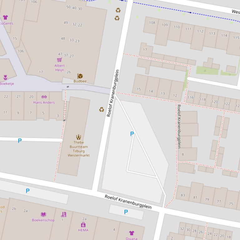 Het Roelof Kranenburgplein in Tilburg heeft 2 postcodes, te weten: 5042MA en 5042MB. Deze weg heeft de huisnummerreeks 1 t/m 52. Weg Roelof Kranenburgplein ligt in de buurt Westermarkt binnen de gemeente Tilburg.