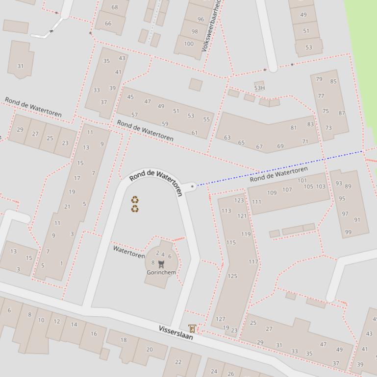Rond de Watertoren in Gorinchem heeft 3 postcodes, te weten: 4201ZN, 4201ZP en 4201ZR. Deze weg heeft de huisnummerreeks 1 t/m 127. Weg Rond de Watertoren ligt in de buurt Bovenstad binnen de gemeente Gorinchem.
